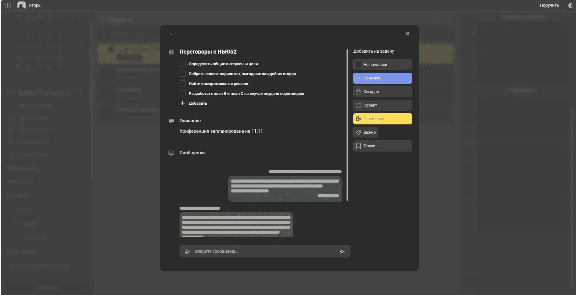 При создании задач на переговоры и встречи указывайте в описании цель - найти решение, устраивающее обе стороны.