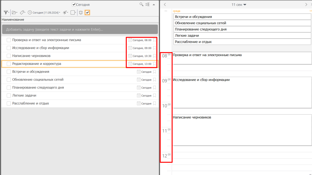 - Распределите задачи по времени в соответствии с вашим циркадным ритмом. Учитывайте перерывы между заданиями.