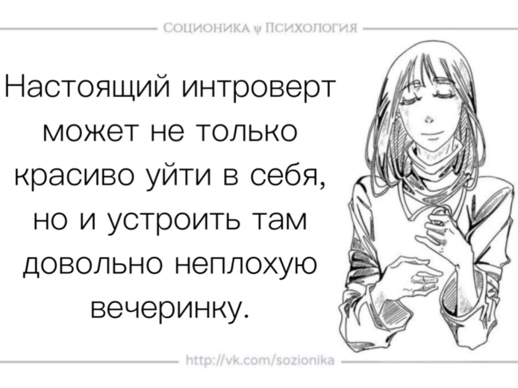 Это человек, который черпает энергию из внутреннего мира. Представьте себе батарейку: у экстравертов она заряжается от общения с людьми, новых впечатлений и событий. А у интровертов — от тишины, размышлений и занятий, которые позволяют погрузиться в себя.