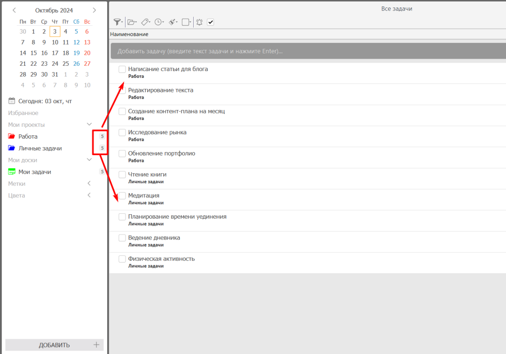 Создание проектов. Добавьте отдельные проекты для различных задач или тем. Это позволяет сосредоточиться на одной области и не путаться в множестве дел.