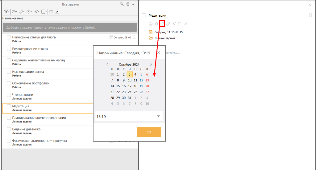 Интровертам важно иметь время для восстановления и самоанализа. Таск-менеджер предлагает встроенный календарь, который позволяет:
