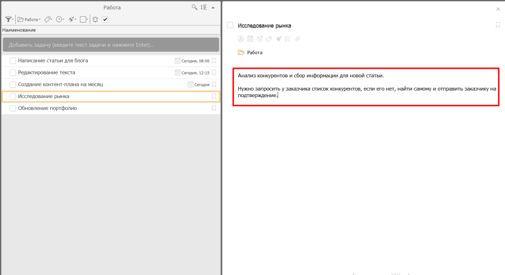 - В заметках к заданиям подробно записывайте шаги, мысли, уточнения.