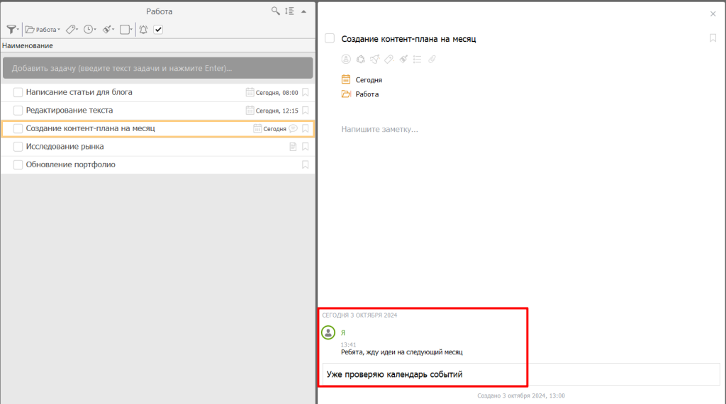 В таск-менеджере можно оставлять комментарии к задачам, обмениваться файлами и ссылками, что позволяет общаться с коллегами в удобное время. Это снижает стресс от необходимости мгновенно отвечать и позволяет сосредоточиться на качестве коммуникации.