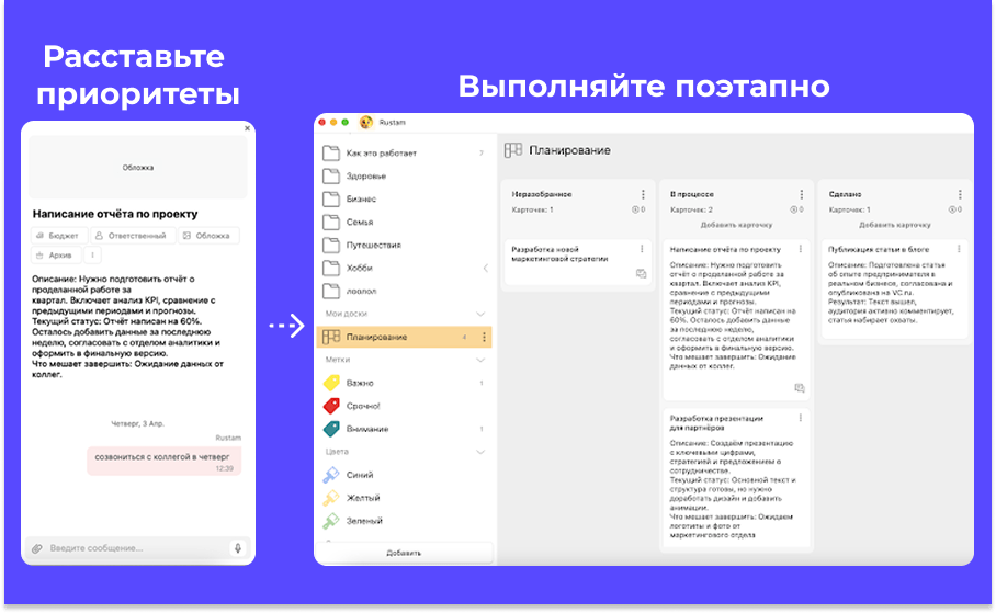 Совет: Начните с плана и тезисов — так проще двигаться вперёд без зацикливания на деталях.