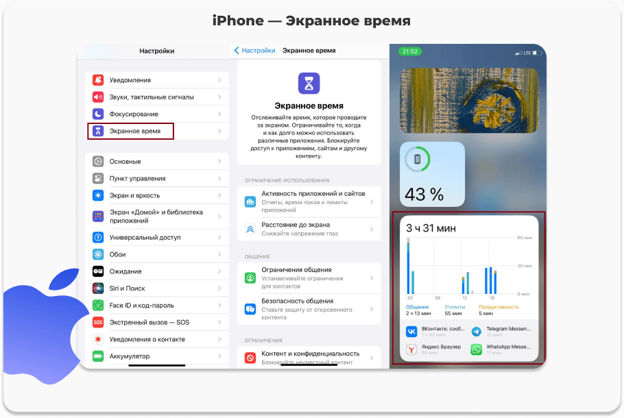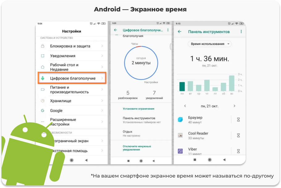 - Отслеживайте, как вы используете смартфон. Мозг засоряется от постоянного поглощения информации. Посмотреть, на какие приложения вы тратите больше всего времени, можно в настройках телефона. Там же вы сможете ограничить к ним доступ, если заметите, что они отнимают слишком много времени.