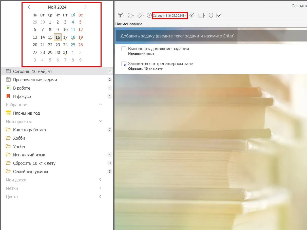 После установки дат задачи автоматически появляются в календаре. Так можно наглядно увидеть свою загруженность по дням и неделям.