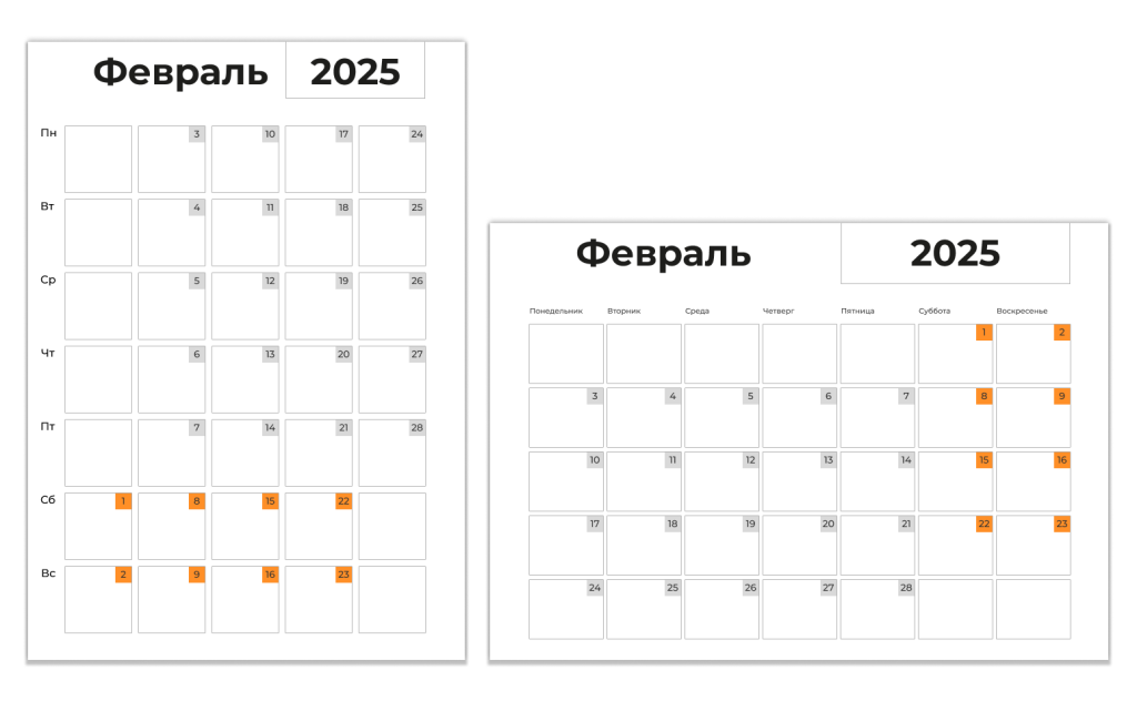 Чтобы не пропустить ни одно важное событие в Феврале, используйте бумажные шаблоны календаря, которые мы подготовили специально для вас.