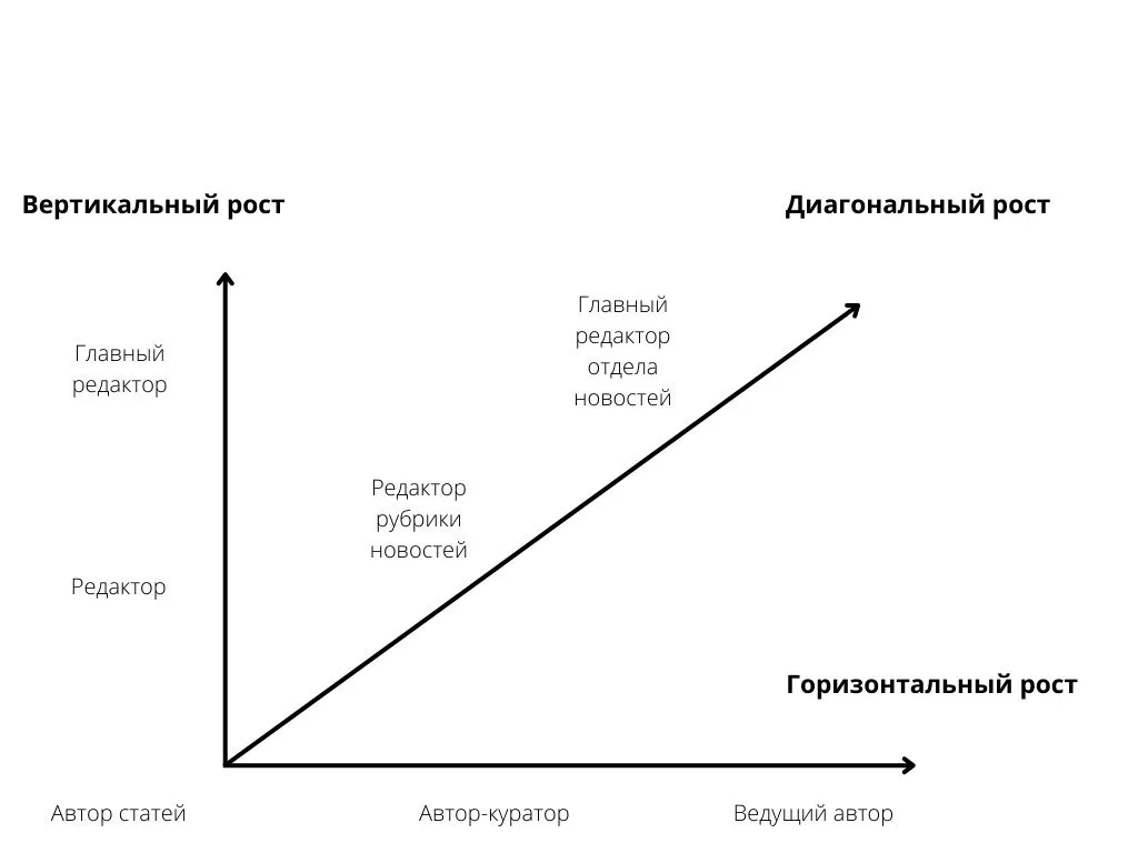 **Горизонтальная **— углубление экспертизы без смены должности, переход в смежные направления.