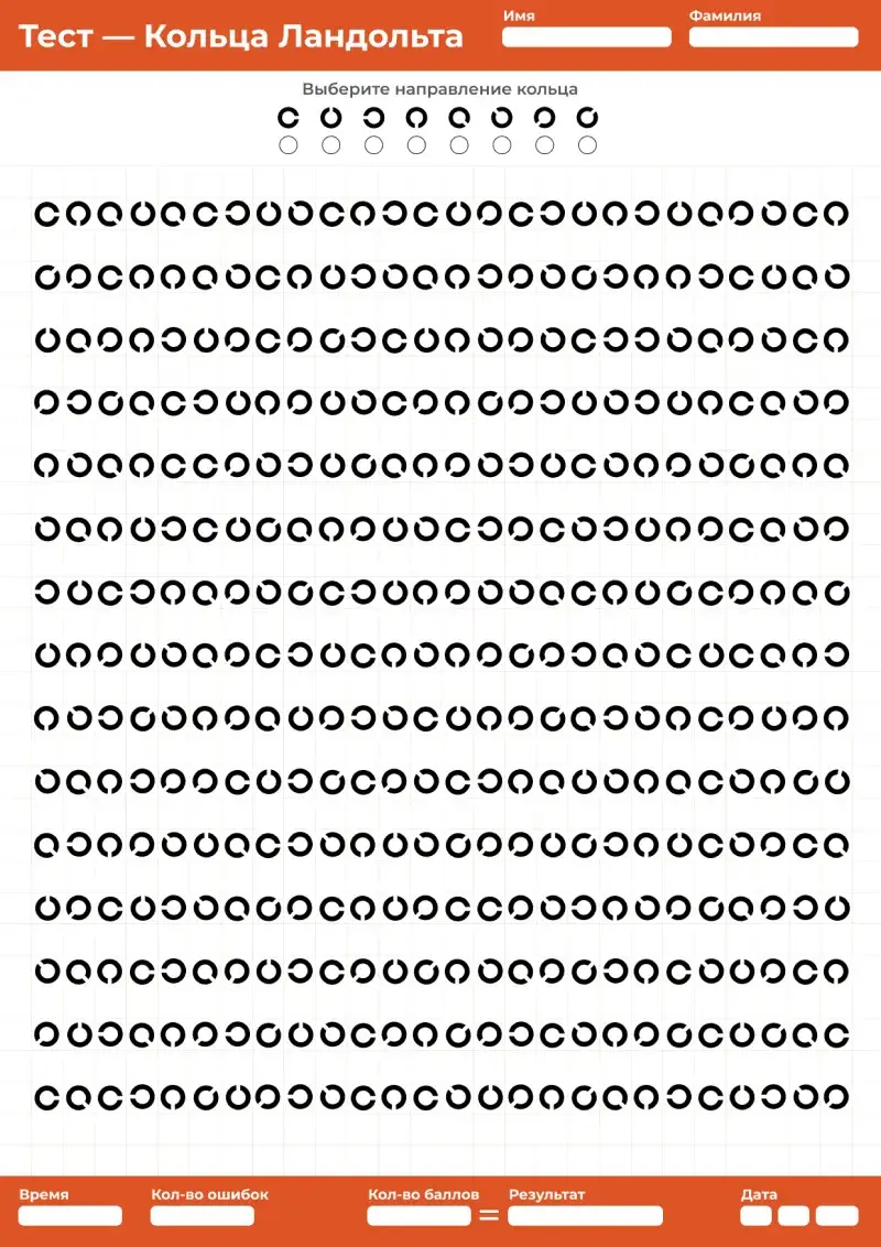 Внимание и концентрация играют не последнюю роль в повседневной деятельности человека. От этих двух аспектов зависит продуктивность в течение всего дня, то есть, то количество работы, которое мы успеваем сделать за единицу времени. Человеку с хорошей концентрацией внимания легко сфокусироваться на важных задачах и закончить работу в срок. И наоборот, если человек не может сфокусированно работать, его качество и скорость работы будут хромать. Для определения уровня концентрации в психологии давно разработаны специализированные тесты. Один из таких тестов — кольца Ландольта. Он позволяет оценить, насколько хорошо человек может сосредотачиваться на визуальных задачах, выявляя отклонения в способности концентрироваться.