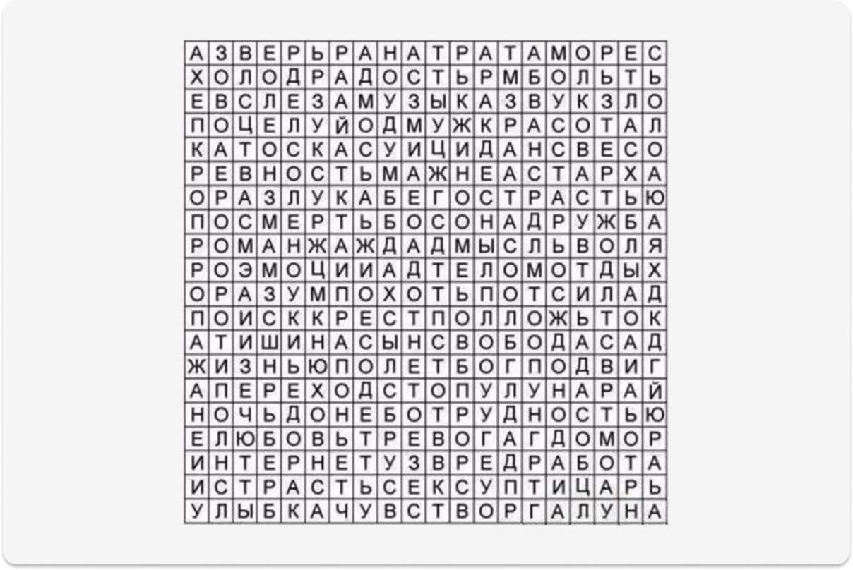 Выберите слово из таблицы с буквами, которое первым бросилось в глаза или имеет отношение к задаче.