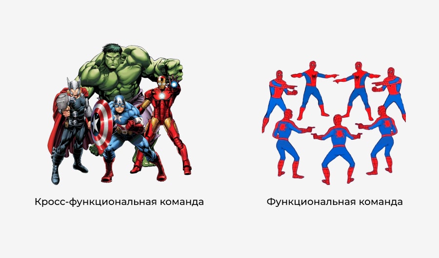 Функциональная команда ограничена одним направлением работы, а кросс-функциональная — позволяет охватить все аспекты проекта.