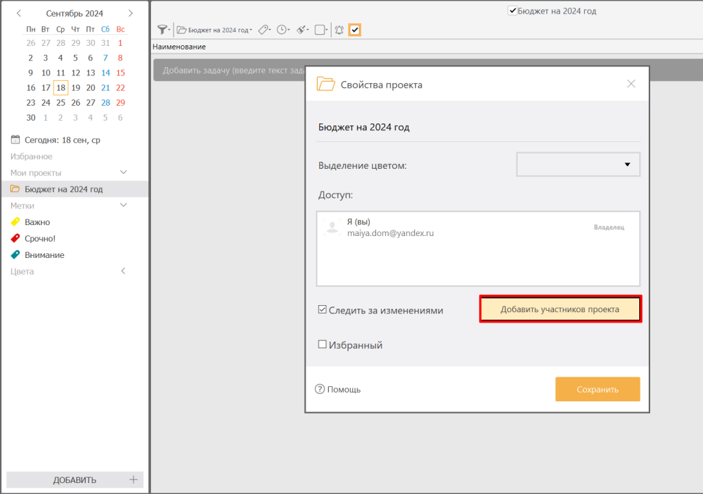 - Добавьте в проект всех сотрудников, участвующих в процессе бюджетного планирования. Это могут быть руководители отделов, бухгалтеры и финансовые аналитики.