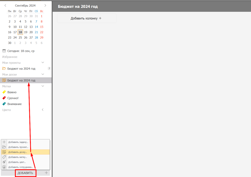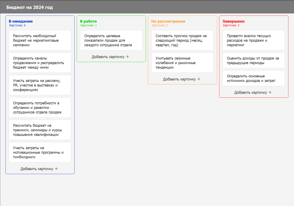- Создайте доску, визуализируйте процесс бюджетного планирования с их помощью.