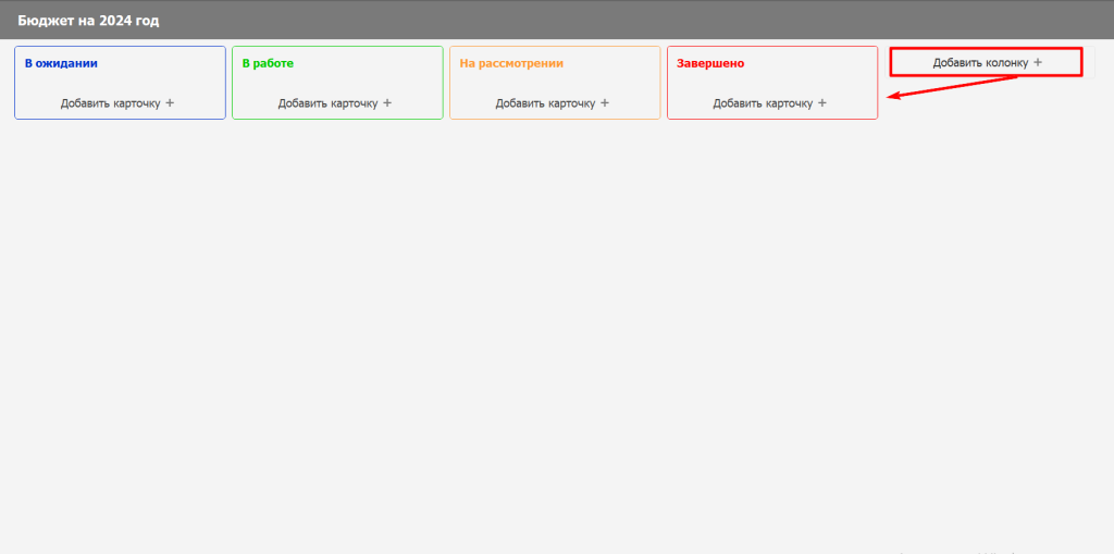 - Создайте столбцы «В ожидании», «В работе», «На рассмотрении», «Завершено».
