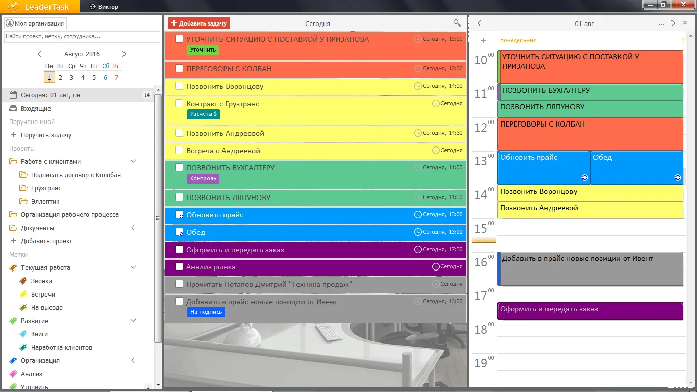Персональный органайзер LeaderTask позволяет систематизировать и сконцентрировать задачи работника отдела продаж и информацию, необходимую для их выполнения, в одном месте и быстро ориентироваться в объёме накопленных данных.