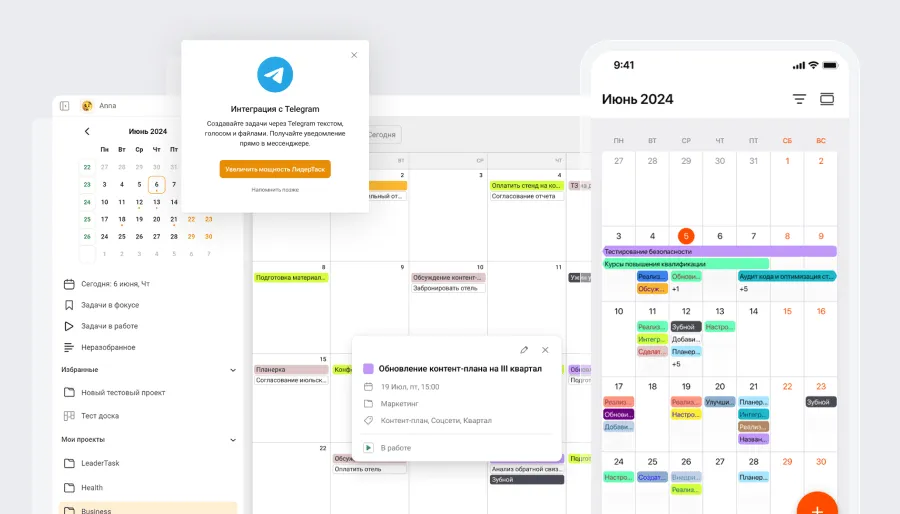 Для составления планов на месяц попробуйте бесплатное приложение планировщик ЛидерТаск. Составляйте списки дел, прикрепляйте файлы, отслеживайте привычки, разделяйте дела по проектам, делитесь задачами. Приложение можно использовать как на телефоне, так и на компьютере.