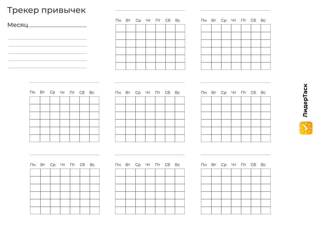 Бумажные трекеры устроены проще. Чаще всего они выглядят как таблица с датами, в которой можно проставлять плюсы и минусы. По запросу в поиске легко найти, скачать и распечатать трекер. В том числе это можно сделать на нашем сайте.