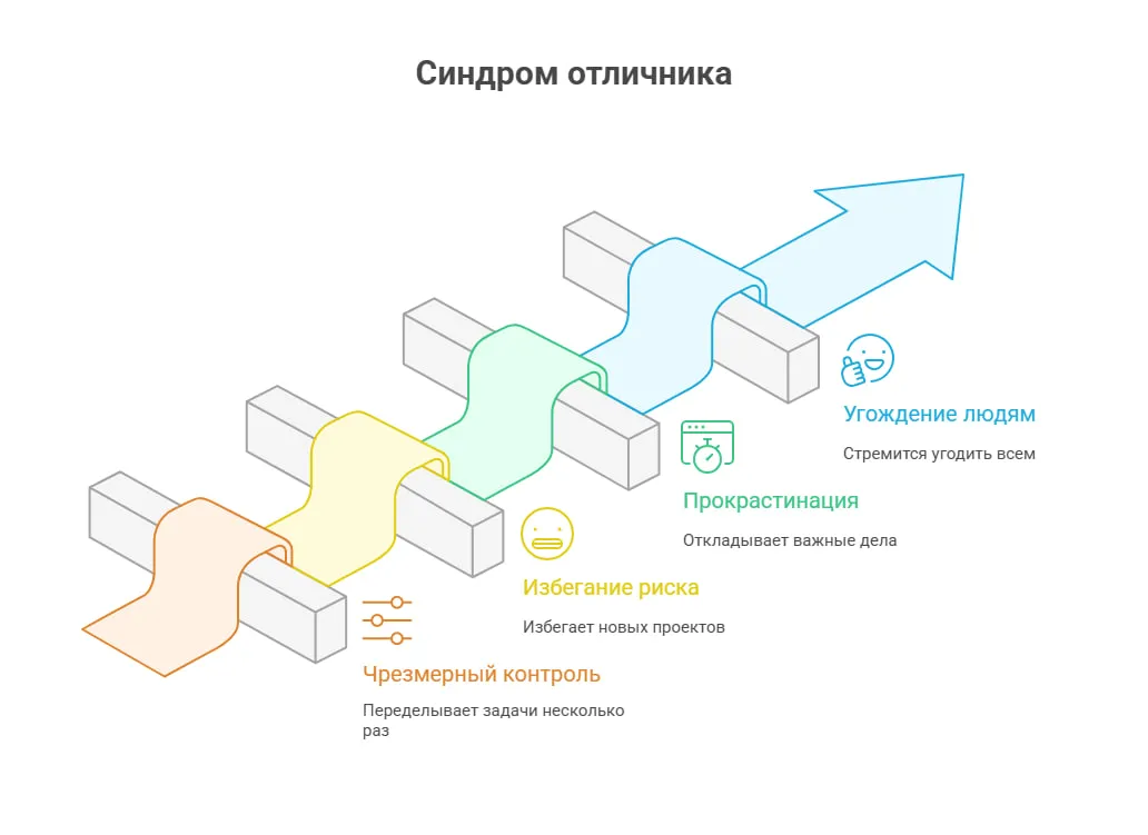 Многим взрослым знакомо ощущение, что нужно всё делать сверх меры и не давать себе права на ошибку. Именно так проявляется синдром отличника. Этот термин обозначает состояние, при котором перфекционизм превращается в зависимость от внешней оценки, а любая неточность кажется угрозой самооценке и профессиональному успеху.