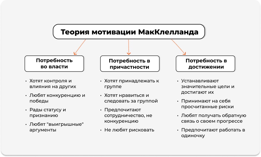 Теория МакКлелланда — практический инструмент, который помогает руководителям повысить мотивацию сотрудников и создать благоприятные условия для их развития.