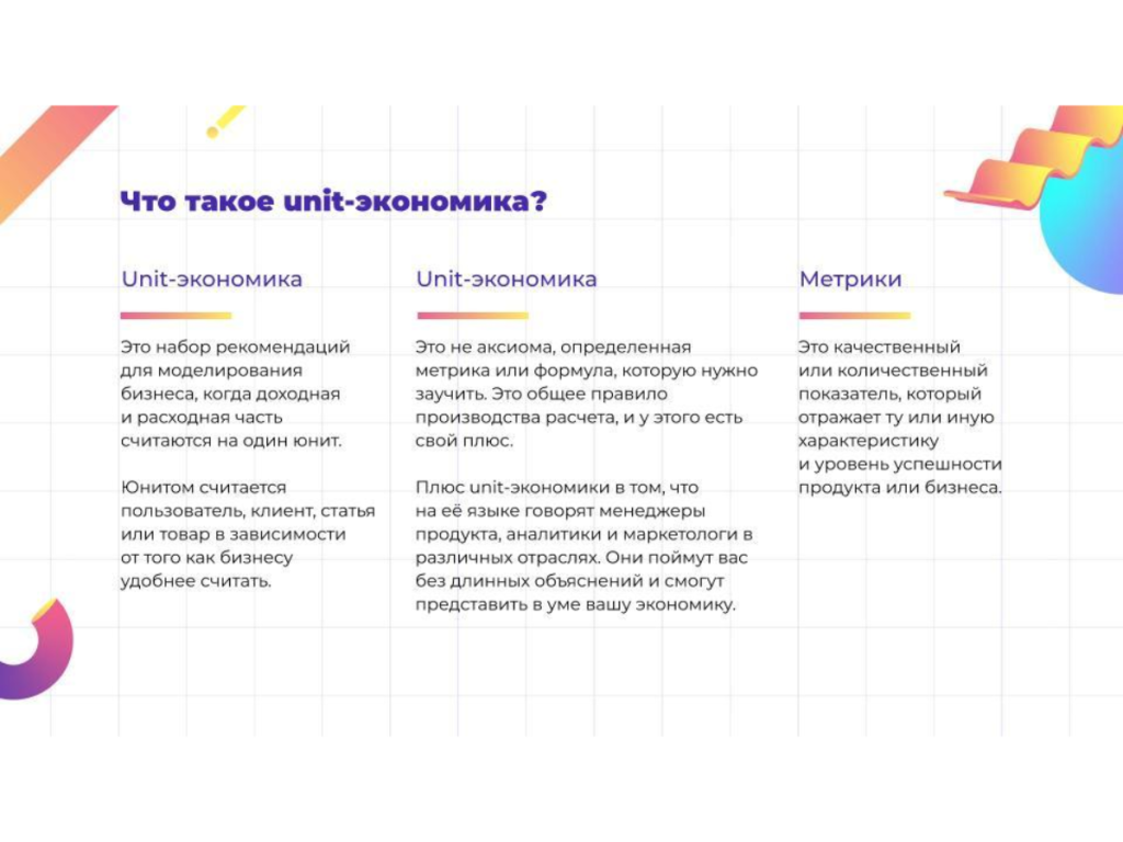 Это финансовая модель, которая позволяет оценить прибыльность отдельной единицы бизнеса (юнита), будь то клиент, товар или услуга. Основная идея заключается в том, чтобы соотнести доходы, получаемые от юнита, с его затратами. Позволяет глубже понять финансовые показатели компании и показать наиболее прибыльные направления для масштабирования и оптимизации.