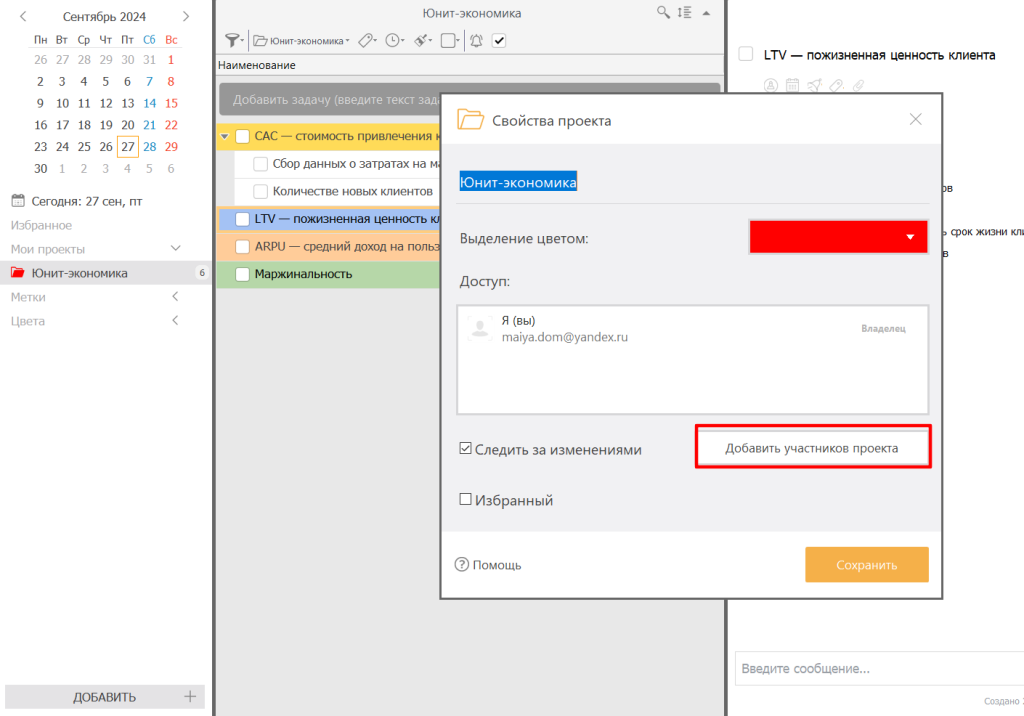 - Добавьте коллег в проект, чтобы они могли участвовать в анализе и расчетах.