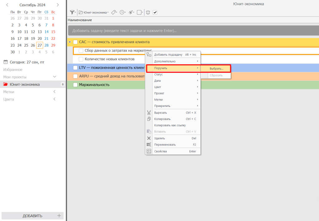 ЛидерТаск поддерживает командную работу, что важно при анализе юнит-экономики. Можно делиться проектами с коллегами, назначать им задачи и отслеживать прогресс выполнения.