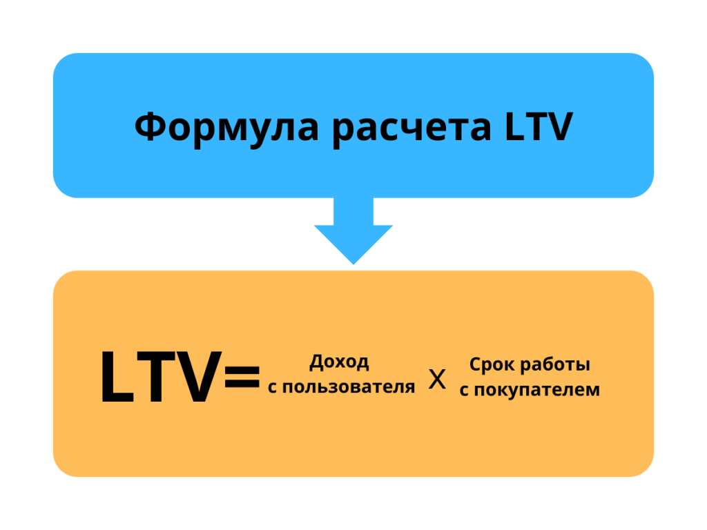 Пример расчета: если клиент приносит 1 000 рублей ежемесячно, а средний срок сотрудничества — 12 месяцев, то нужно доход с пользователя умножить на срок работы с ним: LTV=1000×12=12000 рублей.