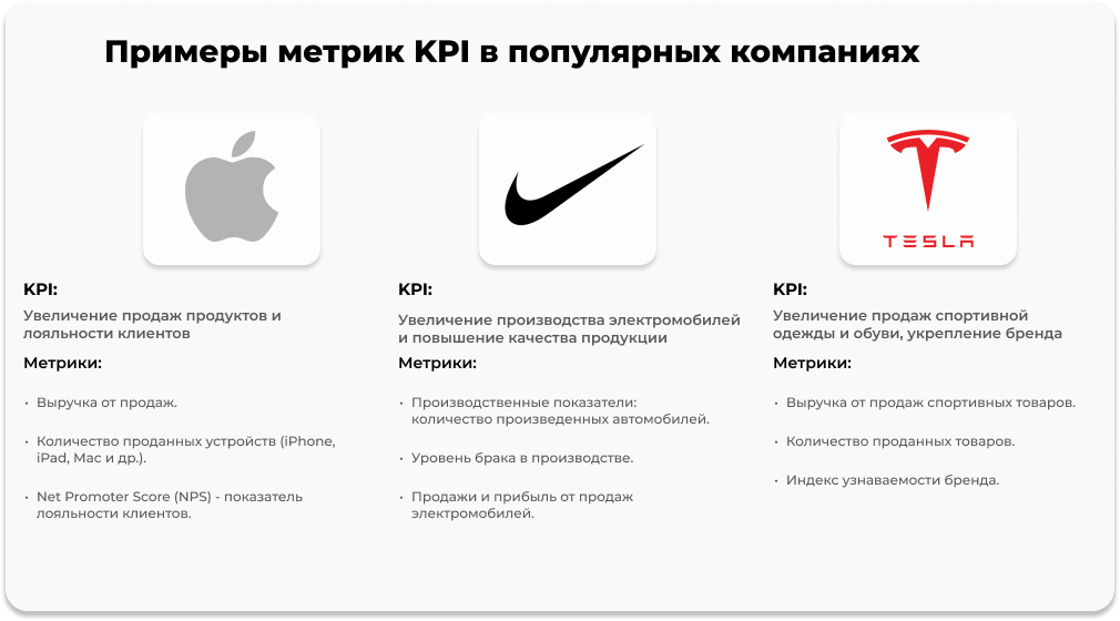 KPI обычно представляют собой числовые показатели, которые отслеживают эффективность процессов. Эти показатели помогают определить, насколько хорошо компания или отдел справляются со своими задачами. KPI более статичны и могут не изменяться на протяжении длительного времени.